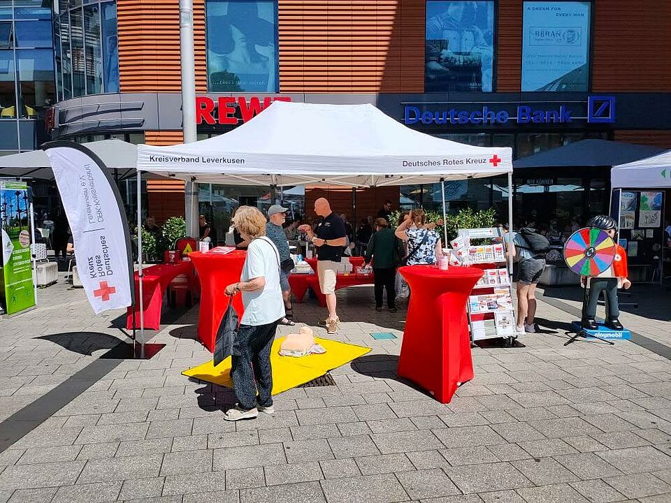 Bei strahlendem Sonnenschein und in bester Stimmung fanden am 6. Juli die 3. Leverkusener Gesundheitstage statt – und wir vom DRK Kreisverband Leverkusen waren mittendrin. Auf dem Wiesdorfer Platz präsentierten wir unser Engagement für mehr Gesundheit, Prävention und Sicherheit im Alltag.