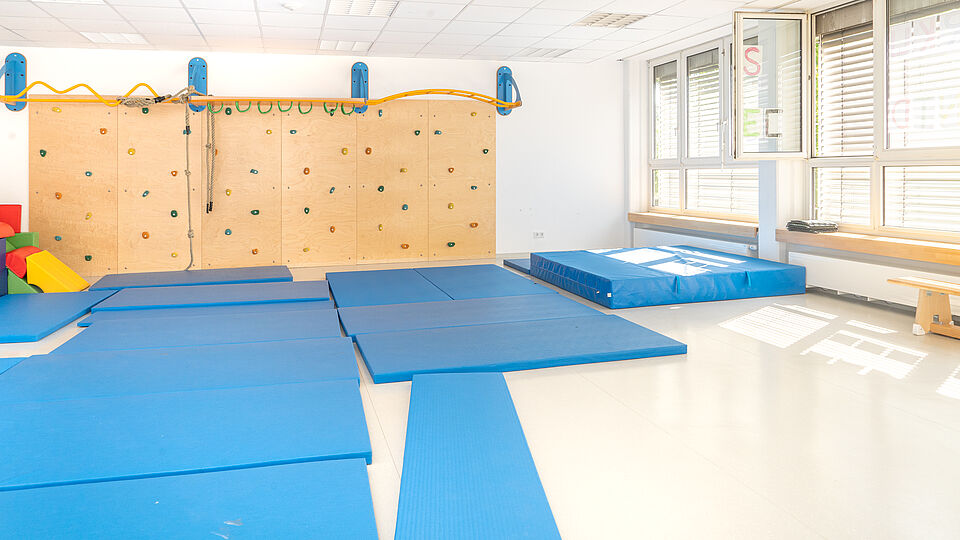 Die modern sanierte Einrichtung bietet großzügige Gruppenräume mit eigenem Schlaf- und Sanitärbereich. Ergänzt wird das Raumangebot durch vielfältige Funktionsräume für kreative, musische und bewegungsorientierte Angebote – von Musik und Rollenspiel über Werken bis hin zu Forscherstationen.